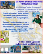 УВАГА! ТРИВАЄ НАБІР ДО ПЕРШОГО КЛАСУ.