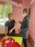 Після цього діти взяли участь у творчій грі “Ми — лікарі”, де обстежували та “лікували” один одного, вигадували назви вакцин та розповідали, від чого вони захищають.